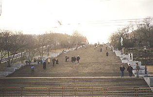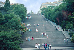 At the bottom of the Potemkinskaya Steps and a long ways to go up. The steps are named after Gregory Potemkin, a guard and suitor of Queen Catherine the II.